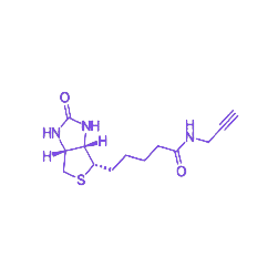 Biotin-alkyne(CAS:773888-45-2)是一种整合生物素亲和性与炔基点击活性的双功能试剂,分子量281.37,纯度≥95%,外观呈白色结晶性粉末,凭借高特异性、强亲和性与低毒性的综合优势,广泛应用于生物分子纯化、免疫检测及细胞成像等领域,是科研与医药领域开展生物亲和相关研究的优选工具。 该试剂的分子结构赋予其三大核心特性。首先是双功能协同性,分子中的炔基(-C≡CH)可与叠氮化合物通过CuAAC(需催化剂)或SPAAC(无铜)反应实现高效偶联,生物素基团则能与链霉亲和素形成稳定复合物(亲和常数Kd≈10⁻¹⁵ M),两步反应特异性高且无交叉干扰,可实现“标记-富集-检测”一体化操作。其次是生物相容性优,生物素作为天然维生素B7衍生物无细胞毒性,炔基点击反应条件温和(室温、近生理pH),活细胞修饰后存活率可达95%以上,且不影响生物分子的天然结构与功能。此外,应用灵活性强,既可用于体外生物分子纯化(如蛋白富集),也适用于活细胞成像与体内靶向递送,适配多场景需求,同时与磁珠分离、荧光检测等多数实验技术兼容,无需特殊设备。 在理化性质与储存方面,该试剂对光稳定,溶解性可通过DMSO或甲醇助溶优化。储存时,于-20℃密封、干燥条件下可稳定保存24个月以上,常温短期运输(≤7天)无需低温包装,仅需密封防潮。应用中,该试剂能够实现生物分子的高效富集、免疫检测的信号放大及细胞目标分子的准确示踪,尤其适合替代传统放射性或荧光直接标记试剂,在提升实验效率的同时增强操作安全性。
