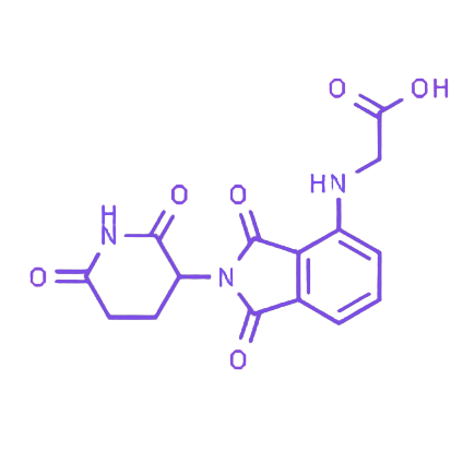 Thalidomide-NH-CH2-COOH 是一种以沙利度胺为核心结构的小分子衍生物,通过在沙利度胺骨架上引入含羧基的甲基链进行化学修饰,既保留了母体结构特征,又赋予分子活泼的反应位点,适用于功能化分子体系的构建。 该分子通过氨基与含羧基的甲基链(CH2-COOH)连接形成,核心结构保留沙利度胺基本骨架,末端羧基官能团为后续偶联及表面修饰提供关键反应位点。结构设计上,短链甲基连接方式兼顾分子紧凑性与化学偶联的空间灵活性,羧基可在温和条件下与氨基、羟基等通过酰胺化或酯化反应实现高效偶联,适用于与纳米材料、蛋白质、荧光探针及多肽分子的连接,为构建功能化复合体系奠定基础。 在应用领域,该分子在纳米药物载体设计中可通过羧基修饰实现靶向性优化与分布特性调控;在分子探针合成及表面生物偶联领域,其活泼反应位点支持精准化学修饰,提升功能分子的稳定性与特异性。通过核磁共振(NMR)、质谱(MS)、HPLC等技术可对其结构及纯度进行严格表征,确保科研与工业应用中的可靠性。凭借高纯度、良好溶解性及可控反应位点,该衍生物已成为生物化学、纳米技术及药物递送领域的重要中间体,为多功能分子工具的开发提供灵活解决方案。
