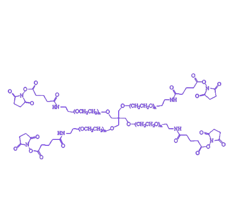 四臂架构呈辐射状分布,在溶液或材料体系中可同时提供4个独立反应位点,相比线性结构显著提升与其他分子的结合效率,尤其适用于多价态偶联需求。聚乙二醇链段赋予分子优异的亲水性与生物相容性,在生物环境中可有效降低免疫原性,减少血浆蛋白非特异性吸附,避免被免疫系统快速清除,从而延长体内循环时间。其良好的水溶性确保分子在溶液中稳定分散,防止聚集沉淀,维持结构完整性。