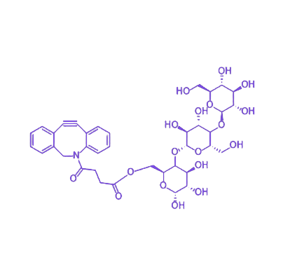 在生物分子标记与检测中,glucan-DBCO可与叠氮修饰的蛋白质、核酸等生物分子高效反应,实现对目标分子的精准标记,为追踪其在生物体内的动态行为提供可靠手段。在药物递送系统构建方面,该产品可作为载体骨架,通过DBCO-叠氮点击反应连接药物分子,利用葡聚糖的生物相容性降低毒副作用,同时借助其修饰的靶向基团实现药物的定向运输与可控释放,为提高治疗效果提供了新策略。
