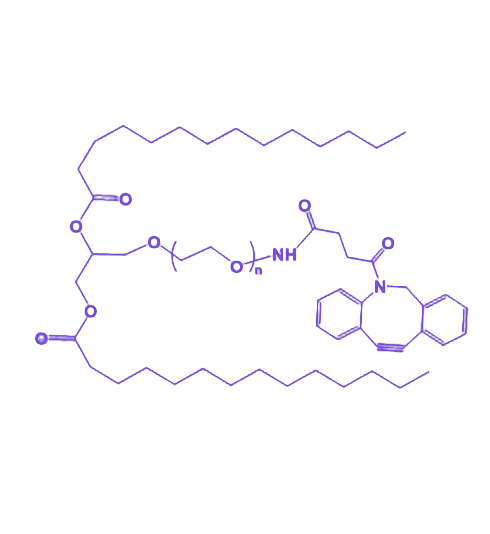DMG-PEG-DBCO 是一种集多种优异性能于一体的多功能复合物,其独特的结构设计使其在生物医学领域展现出广泛的应用潜力。该复合物由亲脂性的二肉豆蔻酰甘油(DMG)、生物相容性良好的聚乙二醇(PEG)链段以及具有点击化学反应活性的二苯并环辛炔(DBCO)基团通过化学键连接构成,三者协同作用赋予了分子靶向递送、长循环稳定性及高效生物偶联等核心功能。