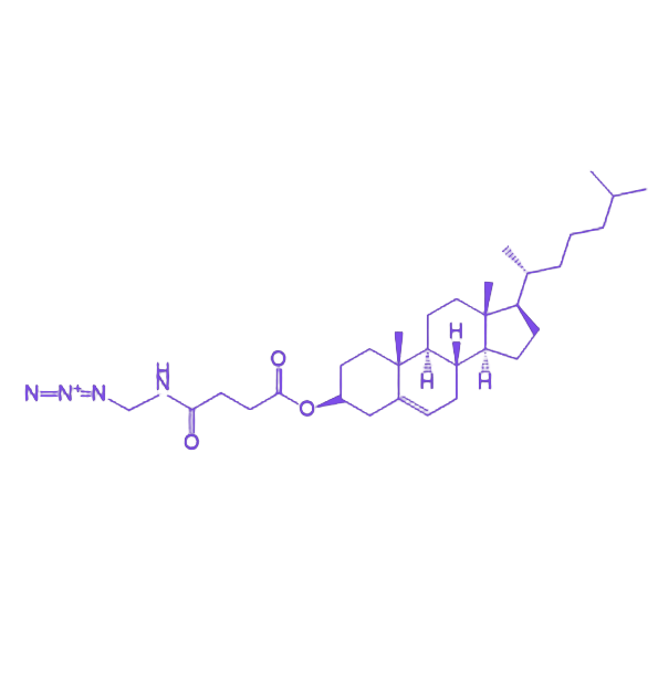 cholesterol-N3是胆固醇分子与叠氮基团通过共价键连接形成的功能性化合物,其结构同时赋予脂溶性、生物膜亲和性及化学反应活性三重核心特性,在生物医学研究领域具有重要应用价值。 胆固醇结构单元使其具备优异的脂溶性和生物膜亲和性,可高效嵌入脂质双分子层或参与脂蛋白组装;叠氮基团(-N3)作为点击化学的关键功能模块,能与含炔基化合物发生高效、高特异性的1,3-偶极环加成反应,实现靶向分子偶联或标记。 在应用场景中,该化合物主要用于构建脂质体、纳米粒等药物递送载体,通过偶联抗体、肽段等靶向配体实现药物的精准递送;同时可作为生物探针标记细胞膜表面受体或生物大分子,用于活细胞成像、蛋白质相互作用分析及亚细胞结构动态追踪。 稳定性方面需严格控制储存及操作条件:常温下化学性质相对稳定,但叠氮基团为高能基团,热敏感性显著,加热至分解温度时会释放氮气并伴随能量释放,存在爆炸风险,故需远离热源;化学稳定性受极端条件影响,强氧化剂可氧化叠氮基导致分解,强还原剂易引发基团结构改变,且胆固醇骨架在强酸或强碱环境中可能发生水解或异构化反应。