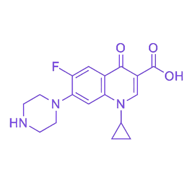 环丙沙星(Ciprofloxacin)是一种合成的第三代喹诺酮类抗菌化合物,化学式为C17H18FN3O3,具有广谱抗菌活性和显著的灭菌效果,其主要通过作用于细菌的DNA回旋酶,抑制DNA的合成与复制,从而导致细菌死亡。该物质在临床上具有重要应用价值,常见别名包括环丙氟哌酸、悉复欢、丙氟哌酸等。 环丙沙星通常呈现为白色至微黄色结晶性粉末,几乎无臭,味苦。作为第三代喹诺酮类药物的典型代表,其抗菌机制主要是特异性结合细菌DNA复制过程中的关键酶——DNA回旋酶,通过阻碍该酶的正常功能,有效抑制细菌的DNA复制和细胞分裂,最终实现灭菌作用。这种作用机制使其对多种细菌具有高效抑制效果,广泛应用于临床抗感染治疗领域。