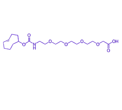 TCO-PEG4-CH₂-acid(trans-Cyclooctene-PEG4-CH₂-acid)是一种用于生物正交化学反应的功能性试剂,其分子结构由高应变环辛烯(TCO)、四单元聚乙二醇(PEG4)柔性链及末端羧甲基(–CH₂COOH)构成,凭借高效的生物正交反应特性,在生物偶联、药物递送及分子影像等领域具有重要应用价值。