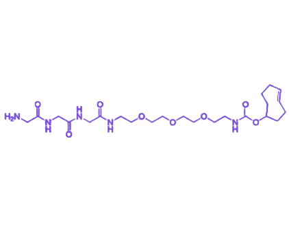 与无肽段的 TCO-PEG 类试剂相比,该试剂通过三肽的酶解代谢途径,显著提升生物体内的代谢安全性,降解产物可自然排出,降低长期累积风险。其典型应用包括响应型抗体-药物偶联物(ADC) 制备、活体可降解靶向探针研发、肽介导的细胞表面特异性标记等领域。储存条件为-20℃干燥密封,在此条件下化学性质稳定,可长期保存。