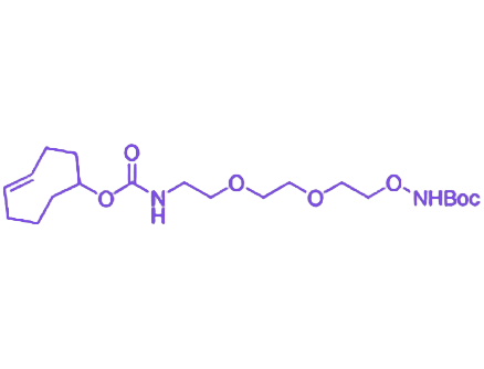 TCO-PEG2-oxyamineBoc 是一种融合分步控制偶联与生物正交反应特性的保护型双功能试剂,其设计核心在于通过 Boc保护羟胺基团 实现反应分步可控,并依托 反式环辛烯(TCO) 与四嗪的高效生物正交反应,满足复杂生物体系修饰需求。