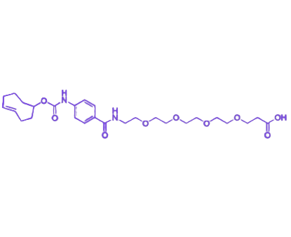 TCO-carbonylamino-benzamido-PEG4-acid 是一种多功能生物偶联试剂,其分子结构集成了 反式环辛烯(TCO)基团、羰基氨基苯甲酰胺连接单元、聚乙二醇 4(PEG4)链段及末端羧基,可通过生物正交反应与缩合反应实现生物分子的精准偶联,在生物医学及材料科学领域具有重要应用价值。