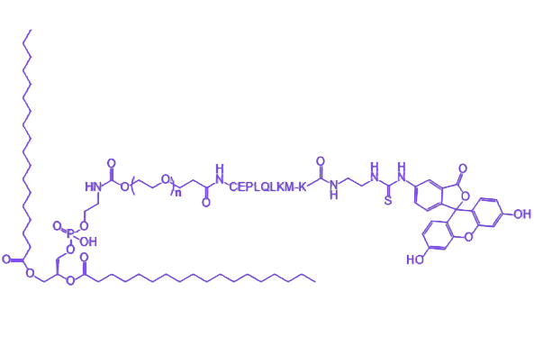 | 别称: | DSPE-PEG5000-CEPLQLKM-K-荧光素 | ||