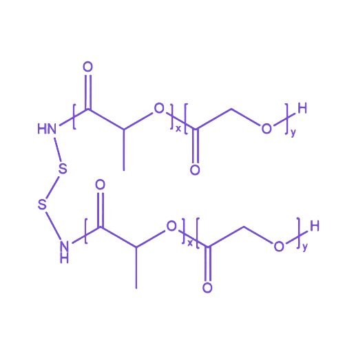 PLGA-SS-PLGA是一种基于聚乳酸羟基乙酸共聚物(PLGA)与二硫键(SS)构建的多功能聚合物体系,其核心设计在于通过二硫键实现PLGA链段的交联连接,既保留PLGA本身的生物相容性与降解可控性,又赋予材料对还原性环境的刺激响应特性,为药物控释等生物医学应用提供精准的释放动力学调控基础。