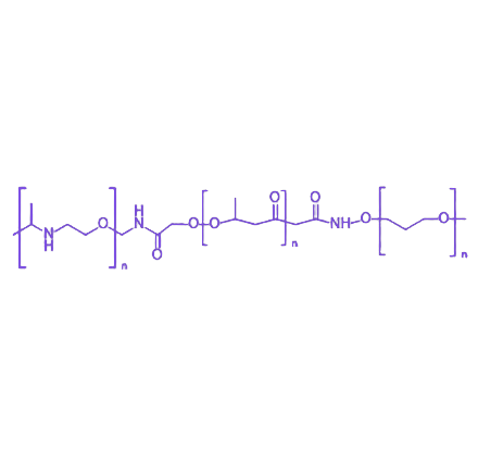 PAE-PLA-PEG是一种由聚(β-氨基酯)(PAE)、聚乳酸(PLA)和聚乙二醇(PEG)通过特定化学键连接形成的嵌段共聚物,其设计整合了三种聚合物的核心特性,适用于对生物相容性、机械性能及界面特性有综合需求的生物医用场景。 该复合物的结构特征表现为三种聚合物链段的有序结合,通过共价键实现分子级别的稳定连接,形成具有明确序列结构的新型高分子材料。PAE链段为材料提供了优异的生物相容性和可降解性,其分子结构中的氨基基团赋予材料一定的反应活性,便于通过化学修饰引入靶向配体或功能性基团;PLA链段则主要贡献材料的机械强度与热稳定性,确保材料在应用过程中维持结构完整性;PEG链段的引入显著提升了材料的亲水性和生物惰性,可有效减少蛋白质吸附和免疫细胞识别,降低非特异性细胞粘附,优化材料在生物体内的循环行为。