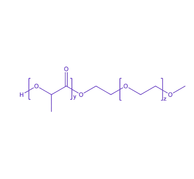 PLA-mPEG共聚物是通过整合聚乳酸(PLA)与甲氧基聚乙二醇(mPEG)的核心优势构建的功能性高分子材料,其设计理念在于协同发挥各组分的生物医学特性并通过分子间相互作用优化材料结构与性能。 PLA作为天然高分子材料,其合成原料来源于乳酸的聚合反应,该特性赋予材料优异的生物相容性和生物可降解性,为其在生物医学领域的应用奠定了关键基础。mPEG(甲氧基聚乙二醇)则是生物材料领域常用的改性剂,具备良好水溶性、低免疫原性及生物相容性,可有效调节材料的界面性能与体内循环特性。此外,MeO-PEG(带乙二氧基甲酸甲酯基的聚乙二醇)作为同类衍生物,同样贡献了水溶性与生物相容性的补充优势。 通过上述三种高分子材料的科学配伍,PLA-mPEG共聚物不仅完整继承了PLA的生物降解能力与mPEG的生物安全性,更通过分子链段的协同作用形成了兼具结构稳定性与功能多样性的共聚物体系,为其在药物控释、组织工程等生物医学领域的精准应用提供了材料学保障。