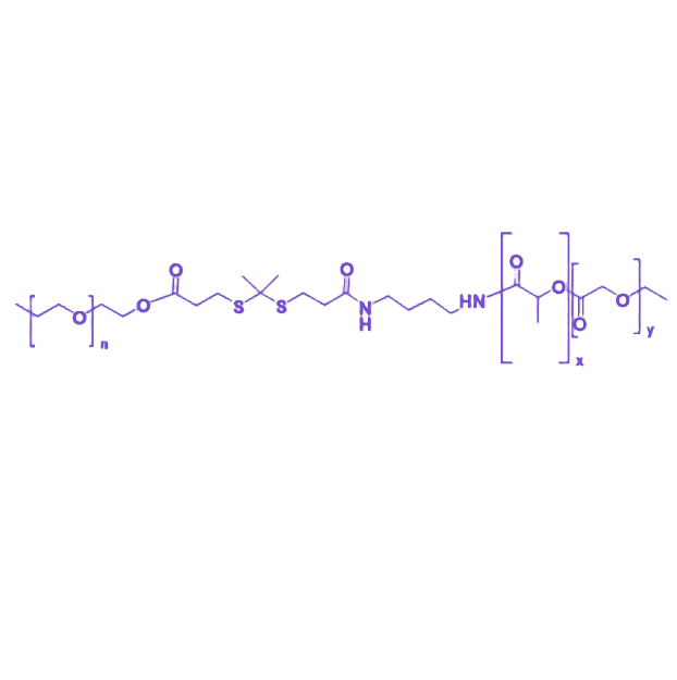 PEG-TK-PLGA 是一种由聚乙二醇(PEG)、酮缩硫醇(TK)和聚乳酸-羟基乙酸共聚物(PLGA)构成的多功能聚合物,在生物医学领域展现出广阔应用前景。其各组分协同作用,赋予材料优异的稳定性、靶向性、刺激响应性和生物安全性,为药物递送系统的开发提供了理想载体。 PEG组分通过其卓越的亲水性确保材料在水溶液中均匀分散,有效提升体系稳定性,防止储存或使用过程中的聚集与沉淀,为药物包裹提供可靠保障。同时,PEG的生物相容性使其可与抗体、配体等靶向分子偶联,借助受体-配体特异性相互作用实现药物的精准靶向输送。此外,PEG还能减少免疫系统对载体的识别与清除,延长材料在体内的循环时间,提升药物到达病灶的几率,从而增强治疗效果。 酮缩硫醇(TK)具有pH敏感特性,在酸性微环境(如肿瘤组织或细胞内吞体)中可发生选择性裂解,实现药物的时空控制释放,避免对正常组织的毒副作用。 PLGA组分具备良好的生物相容性与生物可降解性,其降解产物可通过新陈代谢排出体外,不会在体内积累,确保了材料在生物体内使用的安全性与可持续性。三者的有机结合使PEG-TK-PLGA成为兼具稳定性、靶向性、智能响应和生物安全性的先进药物递送载体。