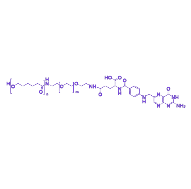 PCL-HYD-PEG-FA 是一种由聚己内酯(PCL)、腙键(HYD)、聚乙二醇(PEG)和叶酸(FA)通过化学键连接形成的功能性共聚物,具备生物相容性、pH 响应性、靶向性及药物递送等多重特性,主要应用于生物医学科研领域,尤其在肿瘤治疗研究中具有重要价值。 其核心结构由疏水性链段 PCL、pH 敏感键 HYD、亲水性链段 PEG 和靶向配体 FA 组成。PCL 作为疏水性主体,具有良好的生物相容性与可降解性,稳定的分子结构使其适合长效植入与药物包裹;HYD 腙键为关键响应单元,在生理 pH 环境(pH 7.4 左右)下保持稳定,而在肿瘤微酸性环境(pH 5.0-6.5)中发生断裂,触发药物快速释放;PEG 作为亲水性修饰链段,可显著提升共聚物的水溶性,降低免疫原性,延长其在体内的循环时间;FA 作为靶向分子,能特异性识别并结合肿瘤细胞表面高表达的叶酸受体,赋予材料主动靶向肿瘤细胞的能力。 该共聚物外观通常为白色粉末或粘性液体,具体形态取决于分子量及 PEG 与 PCL 的比例,可溶解于部分有机溶剂,纯度一般可达 95%。在应用方面,其可通过自组装或乳化法构建纳米载体,实现抗肿瘤药物的靶向递送与 pH 响应性释放,有效提高药物在肿瘤部位的富集浓度,减少对正常组织的毒副作用,为肿瘤精准治疗研究提供重要材料支撑。