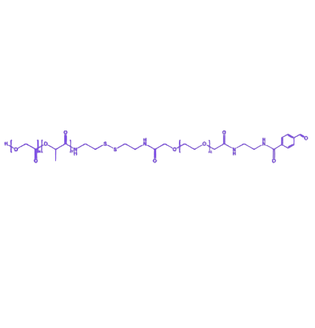 PLGA-SS-PEG-CHO是一种集成多种功能性基团的生物医用聚合物载体,由聚乳酸-羟基乙酸共聚物(PLGA)、双硫键(SS)、聚乙二醇(PEG)及醛基(CHO)依次连接构成,具备生物可降解性、环境响应性、亲水性修饰及生物分子偶联能力,可作为智能递送系统的核心载体。