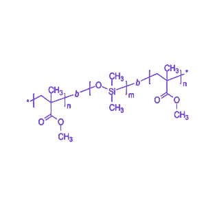 该材料的分子架构中,PDMS嵌段作为软段,具有极低的玻璃化转变温度(约-125°C)、优异的柔韧性、生物相容性和表面活性,赋予材料橡胶般的弹性行为与抗老化性能;PMMA嵌段作为硬段,具备较高的玻璃化转变温度(约105°C)、良好的机械强度和光学透明度,为材料提供物理交联点与刚性支撑。通过精准调控各嵌段的分子量与比例,可系统调节材料的硬度、弹性及加工性能。
