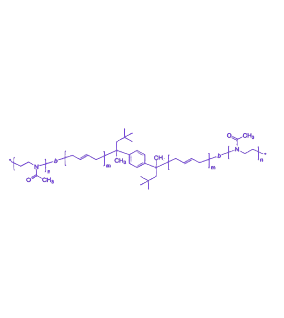 PMeOx-PB-PMeOx 是一种由亲水性聚(2-甲基-2-氧唑啉)(PMeOx)端段与疏水性聚丁二烯(PB)中段构成的 ABA 型三嵌段聚合物,通过分子设计实现了高亲水性、疏水核稳定性、结构柔性与可调形态的协同整合,在纳米材料与软物质工程领域具有重要应用潜力。