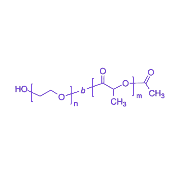 Poly(ethylene oxide)-b-poly(lactide), (α-hydroxy, ω-acetal)-terminated(PEO-b-PLA-COCH3)是一类兼具双功能端基修饰与智能响应特性的嵌段共聚物,由亲水性聚环氧乙烷(PEO)链段、可生物降解聚丙交酯(PLA)链段通过精准分子设计聚合而成。其独特的分子结构赋予材料在生物医用领域,尤其是药物递送与基因治疗中的多功能调控能力,相比传统PEO-PLA共聚物具有更优异的靶向性与可控释放性能。