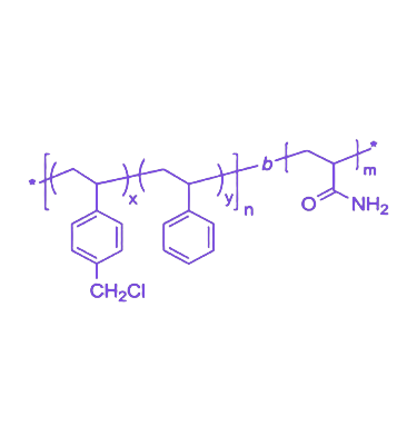Poly(4-chloromethyl styrene-co-styrene)-b-poly(acrylamide)(P(CMS-co-St)-b-PAAm)是一种具有独特结构与丰富功能的反应性两亲性嵌段共聚物,由疏水性聚(4-氯甲基苯乙烯-共聚-苯乙烯)嵌段与亲水性聚丙烯酰胺嵌段通过共价键连接而成。该共聚物整合了聚丙烯酰胺的良好亲水性与生物相容性,以及聚(4-氯甲基苯乙烯)嵌段高反应活性的氯甲基官能团,构成了一个多功能分子平台,在生物医学与材料科学领域具有广泛应用前景。