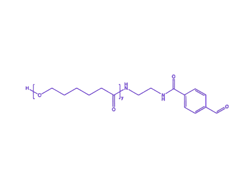 PCL-CHO(聚己内酯-醛基)是一类兼具生物功能性与反应活性的高分子聚合物,其分子结构中同时包含具有生物降解特性的聚己内酯(PCL)链段和高反应活性的醛基官能团,在生物医用材料领域具有重要应用价值。 外观形态随分子量差异呈现半固体或固体状态,颜色通常为白色或类白色,可溶解于三氯甲烷(CHCl3)、二氯甲烷(DCM)、四氢呋喃(THF)等常用有机溶剂。产品可提供分子量为600、1000、2000、3400、5000、10000的聚乙二醇(PEG)修饰选项,同时支持特定分子量需求的定制服务。 核心特性体现在材料的生物相容性与结构可调控性:PCL链段赋予材料优异的生物降解性和生物相容性,使其适用于医用生物降解材料及化合物控制释放体系的构建;醛基官能团具备较高反应活性,可与含氨基等活性基团的分子发生特异性化学反应,为蛋白载体及配基的交联提供高效反应位点,进而实现化合物的靶向递送与缓释控释功能,同时在组织工程支架材料的制备中展现应用潜力。 合成工艺主要包括后修饰法与引发剂法两类:后修饰法通过预先合成带有羟基、羧基等可反应官能团的聚己内酯,经氯代反应(如与二氯亚砜反应生成氯代聚己内酯)、六亚甲基四胺取代及酸性水解等步骤,在聚合物链端引入醛基;引发剂法则直接采用含醛基的化合物作为引发剂,通过引发ε-己内酯单体的开环聚合反应,将醛基官能团定向引入聚合物链端,两种方法均可实现醛基的高效接枝与产物结构的精确控制。