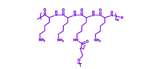 该分子是一种通过精确调控拓扑结构实现生物相容性与功能模块化的嵌段共聚物,其核心价值在于通过聚L-赖氨酸主链与聚乙二醇侧链的可控接枝,在保持阳离子聚合物基因递送能力的同时,显著降低细胞毒性并提升血清稳定性。其关键物理化学性质、构效关系及前沿科研应用共同构成了该共聚物作为非病毒基因递送载体的核心优势。 在生理pH条件下(7.4),该共聚物具有良好的水相分散性,动态光散射显示平均 hydrodynamic 直径约为20-30 nm,zeta电位维持在+35至+45 mV区间,这一特性源于聚赖氨酸链段的质子化氨基与聚乙二醇链段的空间位阻效应协同作用。差示扫描量热法(DSC)分析显示在-55℃左右出现聚乙二醇链段的玻璃化转变,而主链的热分解温度(T_d5%)高达280℃,表明分子结构兼具柔韧性与热稳定性,这种构效关系使其在水溶液中既能形成稳定的纳米复合物,又能耐受生物体内的复杂微环境。 该试剂主要作为非病毒基因递送载体,通过静电相互作用包裹DNA或siRNA形成纳米颗粒,其作用机制涉及聚赖氨酸主链的 质子海绵效应 促进内涵体逃逸,而聚乙二醇侧链则通过“隐形”效应减少蛋白质吸附与网状内皮系统清除。最新研究表明,该共聚物在 CRISPR-Cas9 递送系统中展现出独特优势,通过优化接枝密度(3.3)与聚乙二醇链长(5 kDa),可实现Cas9核糖核蛋白复合物的高效包载与靶向递送,在肝细胞靶向基因编辑实验中使编辑效率提升至传统脂质体的2.3倍。