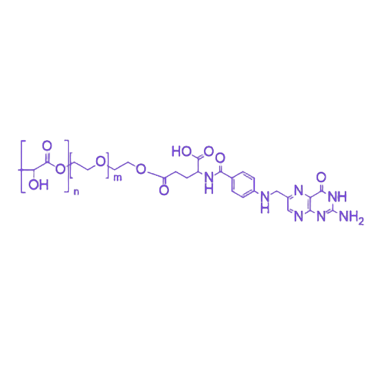 PLLA-PEG-FA是一种由聚左旋乳酸(PLLA)、聚乙二醇(PEG)和叶酸(FA)通过化学偶联形成的多功能生物医用高分子材料,其设计集成了三种组分的核心优势,可作为靶向递送载体或成像探针在生物医学领域发挥重要作用。 PLLA作为材料主体骨架,赋予材料优异的生物相容性和生物可降解性,在体内可通过水解反应逐步降解为乳酸单体,最终经三羧酸循环代谢为水和二氧化碳,避免长期毒性积累。PEG链段通过修饰材料表面,显著提升其亲水性,并通过空间位阻效应减少血浆蛋白的非特异性吸附,延长材料在血液循环系统中的滞留时间。叶酸(FA)作为靶向配体,能够特异性识别并结合于多种肿瘤细胞表面过度表达的叶酸受体,通过受体介导的内吞作用实现药物或成像剂向病变部位的精准递送,有效提高治疗效率并降低对正常组织的毒副作用。 该材料在肿瘤靶向药物递送系统中可包载化疗药物、基因药物等活性成分,通过增强渗透与滞留(EPR)效应及主动靶向双重机制富集于肿瘤组织;在肿瘤成像领域,可偶联荧光染料、磁共振造影剂等功能分子,实现对肿瘤病灶的高灵敏度、高特异性可视化诊断。其模块化的结构设计也为功能拓展提供了灵活性,可根据应用需求调控PLLA与PEG的分子量比例、FA修饰密度等参数,优化材料的理化性质与生物功能。