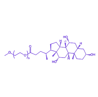 mPEG-Cholic acid是由甲氧基聚乙二醇(mPEG)与天然胆汁酸(胆酸)通过化学键偶联形成的功能化聚乙二醇衍生物,兼具良好的水溶性、生物相容性及肝脏靶向递送特性,可作为纳米药物递送系统载体应用于生物医药领域。 mPEG链段赋予该衍生物优异的水溶性和生物相容性,有效改善疏水性药物的溶解性能并降低其毒副作用;胆酸分子的刚性甾环结构与两亲性使其在水性介质中可自发组装形成纳米胶束或脂质体,通过疏水相互作用高效包裹Chemotherapy药、抗炎药等疏水性治疗分子。 胆酸基团可特异性识别肝细胞表面的胆酸转运蛋白(NTCP),实现药物向肝脏组织的靶向递送,提升病灶部位药物浓度并减少全身系统性毒性。该材料在肝病治疗、抗肿瘤药物递送及跨血脑屏障研究中展现出潜在应用价值,其多功能集成特性为复杂疾病的精准治疗提供了新型载体解决方案。