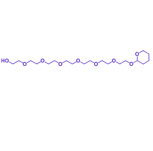 OH-PEG7-THP(羟基-聚乙二醇7-四氢吡喃)是一种高纯度、端基可控的聚乙二醇衍生物,其化学结构为 HO–(CH₂CH₂O)₇–CH₂–O–THP,分子末端修饰有四氢吡喃(THP)保护基,可暂时性屏蔽羟基活性。该保护基在中性及碱性条件下展现良好稳定性,能有效避免羟基在多步反应中发生副反应或交联,从而提升合成反应的选择性与目标产物收率。 PEG7链段作为分子核心结构,具有多重关键功能与优势:显著提高水溶性,增强整个分子及偶联药物在水相体系中的溶解能力;赋予分子增加灵活性,长链结构的柔韧性可减少空间位阻,提升偶联反应效率;改善药代动力学性质,通过延长半衰期减少肾脏清除,延长药物分子在体内的循环时间;同时实现降低免疫原性,通过PEG化遮蔽药物分子表位,降低被免疫系统识别清除的风险。