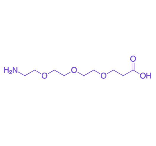 NH₂-PEG3-COOH 是一种异双功能聚乙二醇衍生物,其分子结构特征为两端分别带有伯胺(–NH₂)和羧基(–COOH)官能团,中间通过三单元聚乙二醇(PEG3)链连接,具备双端独立反应活性和优异的水溶性与生物相容性,适用于多种生物分子及材料的精准功能化修饰。 分子结构与官能团特性:该化合物为线性结构,一端为伯胺基团(–NH₂),另一端为羧基基团(–COOH),两者通过含三个重复单元的聚乙二醇链(PEG3)连接。胺端具有较高反应活性,可在温和条件下与羧酸、活化酯(如NHS酯)或其他亲电官能团发生酰胺化反应,形成稳定的酰胺键;羧基端需通过EDC/NHS等活化试剂处理后,才能与胺基、羟基等亲核基团高效偶联,实现双端选择性修饰。 理化性质与优势:PEG3链段赋予分子适度的柔性和空间隔离作用,既保证两端官能团在空间受限体系(如纳米颗粒表面、蛋白质折叠结构)中的可及性,又能有效减少非特异性吸附。该分子在水相及部分有机溶剂(如无水DMSO、DMF)中具有良好溶解性,其亲水性PEG链可显著提升修饰产物的水溶性和生物相容性,同时增强化学稳定性,降低被修饰分子的免疫原性。 应用领域:广泛应用于生物分子功能化与材料表面改性,包括蛋白质、抗体、多肽的定点标记,纳米颗粒(如金纳米粒、脂质体)的表面功能化,小分子药物的靶向递送系统构建,以及多功能分子桥接(如生物探针、药物载体-靶向配体偶联物)等场景。通过双端官能团的分步反应,可实现对目标分子的精准修饰与功能拓展,提高偶联效率和产物均一性。 储存与使用建议:需在–20°C干燥、避光条件下密封保存,防止胺端氧化及羧基基团污染。使用前建议溶解于无水DMSO、DMF或适宜缓冲溶液(如PBS,pH 6.0–8.0),并在惰性气氛(如氮气保护)下操作以维持官能团活性。避免长时间暴露于水相环境导致水解,或接触强氧化剂、强酸/强碱等破坏官能团结构的物质。