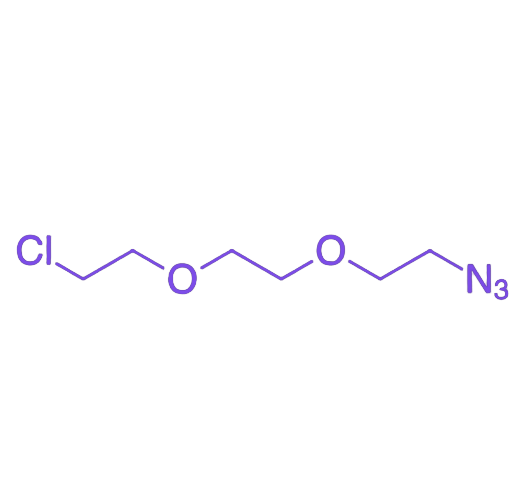 分子由叠氮基(–N₃)和氯代烷基双官能团构成,通过三聚乙二醇(PEG3)链段连接,双活性末端设计赋予分子多反应位点特性。PEG3链段的引入提升了分子在有机相和水相体系中的溶解性,同时减少反应体系中的非特异性吸附,增强生物相容性。