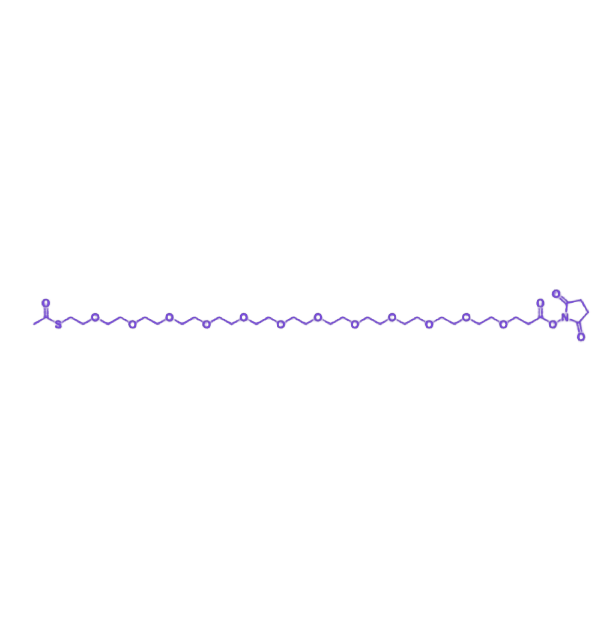 该产品的分子式为 C33H59NO17S,外观呈白色粉末状,纯度≥95%。化学结构两端分别为乙酰硫基(AcS-)和 NHS 酯基团:乙酰硫基可在温和条件(如含三乙胺的无水缓冲液)下脱保护生成巯基,与马来酰亚胺、乙烯砜等基团实现特异性偶联;NHS 酯基团则能快速与氨基(-NH₂)反应,无需额外活化剂即可形成稳定酰胺键。溶解特性方面,产品易溶于极性有机溶剂,水相反应需严格控制 pH 在 7.0-8.0 范围内,并合理规划反应时间以确保反应效率。