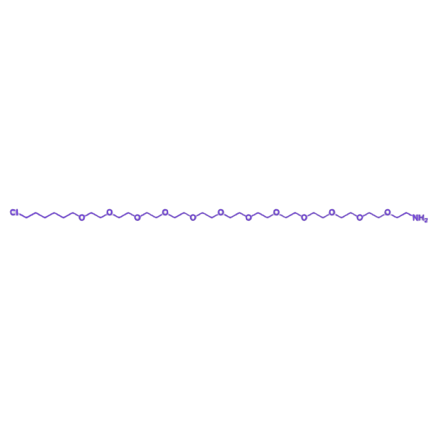 NH₂-PEG12-C6-Cl 是一种双功能聚乙二醇衍生物,其核心由 12 个乙二醇重复单元构成柔性亲水链段,两端分别连接一级氨基(NH₂)和含氯的六碳连接臂(C6-Cl),具备高度的分子改性潜力,广泛应用于生物偶联、材料表面功能化及多官能化体系构建等领域。