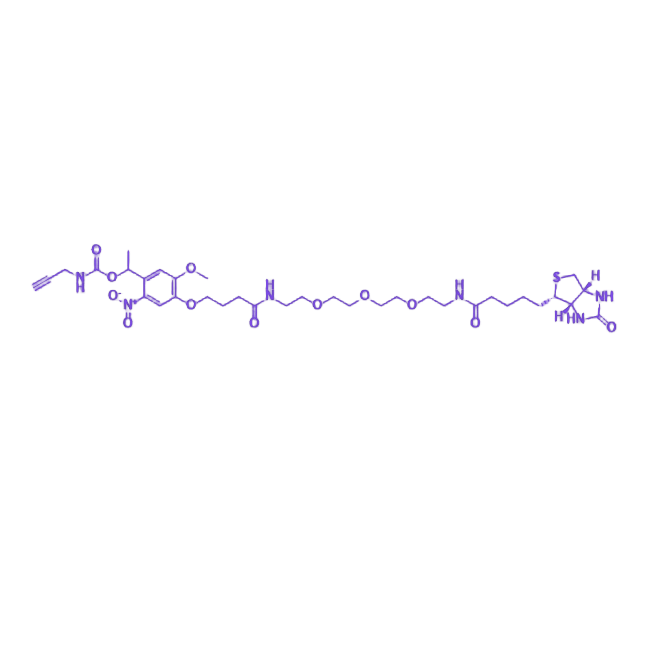 Biotin-PEG3-Alkene 是一种由 生物素、聚乙二醇(PEG3)和烯烃通过化学偶联形成的功能性化合物,兼具靶向结合、生物相容性优化及化学修饰活性,广泛应用于生物检测、蛋白质纯化及生物偶联等领域。 生物素部分可通过高度特异性的非共价相互作用与亲和素或链霉亲和素结合,这一特性为生物分子的靶向识别与分离提供了高效工具。聚乙二醇链(PEG3)赋予分子优异的亲水性和生物相容性,可显著提升化合物在水性环境中的溶解度,同时降低潜在的免疫原性(immunogenicity),并有助于延长其在生物体内的循环半衰期。烯烃基团作为关键的反应位点,具备良好的化学活性,可参与如点击化学环加成反应等高效、高特异性的化学反应,尤其能与含炔基的化合物发生选择性偶联,为构建复杂生物分子探针或药物递送系统提供灵活的修饰途径。