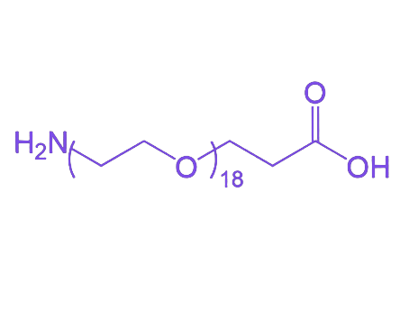NH2-PEG750-COOH 是一种具有双官能团结构的聚乙二醇衍生物,平均分子量约为 750Da,分子两端分别修饰氨基(-NH2)与羧基(-COOH),中间通过聚乙二醇链段连接,兼具高化学活性与生物相容性,广泛适用于生物分子修饰及材料表面改性领域。 该化合物的分子结构特征赋予其多重关键性能:聚乙二醇链段提供优异的 亲水性,可有效降低表面张力并提升水溶液中的稳定性;生物相容性 特性显著减少生物体内的免疫原性反应;长链结构产生的空间位阻效应能有效抑制蛋白质非特异性吸附及细胞黏附,从而延长修饰物在生物体内的循环时间。 化学活性方面,氨基可与羧基、醛基发生酰胺化或还原胺化反应,羧基则能与氨基、羟基等基团通过缩合反应形成稳定共价键,为功能分子偶联提供多样化反应途径。存储与使用过程中需注意:常温干燥条件下化学性质稳定,高温、高湿或强酸碱环境 可能导致官能团降解或链段断裂,建议严格控制保存条件以确保产品性能。