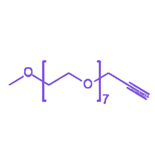 mPEG7-Alkyne(甲氧基七聚乙二醇炔基)是一类兼具生物相容性与反应活性的聚乙二醇衍生物,其分子结构由甲氧基(-OCH₃)、7个乙二醇单元组成的聚乙二醇链及末端炔基(-C≡CH)构成,在生物偶联、材料修饰等领域具有重要应用价值。