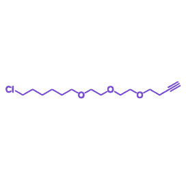 Cl-C6-PEG3-Alkynyl 是一种集成疏水锚定、亲水间隔与特异性反应功能的模块化分子工具,其设计融合了6-氯己基链段的疏水性锚定与反应活性、PEG3单元的亲水性缓冲能力以及炔丙基的生物正交反应特性,适用于生物偶联、界面功能化及智能材料制备等精密分子工程领域。