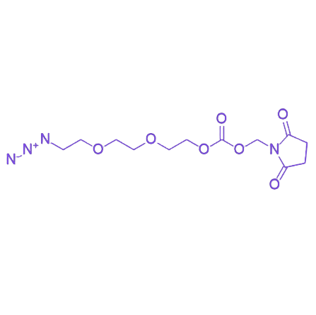 N3-PEG2-NHS(叠氮二聚乙二醇活性酯)是一种兼具点击化学活性与胺基靶向修饰功能的结构 PEG 衍生物,其分子设计集成了叠氮基团的高效反应特性、NHS 酯的生物分子偶联能力以及二聚乙二醇链段的物化调节作用,适用于生物分子修饰、聚合物合成等精密化学偶联场景。 该化合物的叠氮基团(-N₃) 具有极高化学反应活性,可与炔烃、BCN、DBCO 等官能团快速发生铜催化或无铜点击化学反应,生成稳定的三唑环结构,为复杂分子的定向组装提供高效连接途径。另一端的NHS 酯基团在 pH 7-8.5 的温和条件下,能特异性识别并共价结合蛋白质、胺修饰寡核苷酸等生物分子表面的伯胺基团(-NH₂),通过酰胺键形成稳定偶联产物,确保修饰过程的生物相容性与位点选择性。 分子中部的二聚乙二醇(PEG2)链段由两个乙二醇单元组成,该柔性间隔臂不仅赋予化合物优异的水溶性和生物相容性,还能有效减少修饰后分子的非特异性吸附,提升体系的胶体稳定性与分散性,尤其适用于对界面性能敏感的生物医学应用。 产品外观通常为白色至类白色固体粉末,具有较低的吸湿性,需在干燥、避光条件下储存以保持化学稳定性。其多官能团协同作用的分子结构,使其成为化学生物学、材料科学及药物研发领域中实现精准分子修饰与功能化的关键工具试剂。