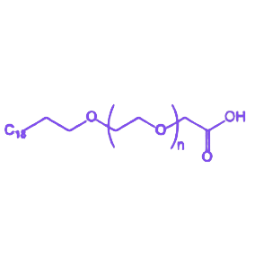 C18-PEG-COOH(十八烷基-聚乙二醇-羧基)是一类具有双亲性分子结构的功能化聚乙二醇衍生物,在生物医学材料、药物递送及表面工程等领域展现出重要应用潜力。其分子设计兼顾了长链烷基的疏水特性与聚乙二醇链段的亲水性能,为构建多功能生物材料体系提供了灵活的化学修饰基础。 该化合物分子由三部分构成:一端为十八个碳的 烷基链(C18),赋予分子良好的脂溶性及对疏水底物的亲和力;中部为线性 聚乙二醇(PEG)链段,通过醚键重复单元提供优异的水溶性、生物相容性及空间位阻效应;末端则为反应活性 羧基(COOH),可通过酰胺键、酯键等共价连接策略实现与生物分子(如蛋白、多肽、药物)的偶联。其典型物化性质包括:在水与多数极性有机溶剂中具有良好溶解性,分子量可通过PEG链段调控(常见范围500-10000 Da),在生理条件下表现出低免疫原性与蛋白非特异性吸附 resistance。基于上述特性,该产品可作为表面改性剂构建仿生界面、作为两亲性载体包载疏水药物、或作为连接臂实现生物分子的定点修饰,尤其在纳米药物递送系统、生物传感器及组织工程支架的功能化修饰中具有不可替代的应用价值。