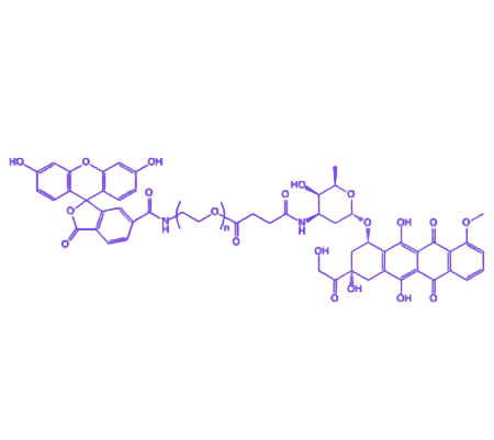FITC-PEG-Azithromycin是一种由异硫氰酸荧光素(FITC)、聚乙二醇(PEG)与阿奇霉素通过化学偶联形成的功能性生物材料。该产品兼具靶向识别、荧光示踪及生物活性多重特性,为药物递送系统研究及生物成像分析提供了理想工具。 该分子通过PEG链的柔性连接,实现了FITC荧光基团与阿奇霉素活性单元的稳定结合,形成具有明确化学结构的共轭产物。其物化性质表现为良好的水溶性及生物相容性,这得益于PEG链的空间位阻效应与亲水性修饰,有效改善了阿奇霉素的分子分散性。在应用价值方面,荧光示踪功能可通过荧光显微镜或流式细胞术实时监测药物在生物体内的分布与代谢过程,而阿奇霉素的抑菌活性则赋予该偶联物在靶向抗菌研究中的独特优势。此外,PEG的引入可延长药物循环半衰期,降低免疫原性,为开发新型长效靶向递送系统奠定基础。