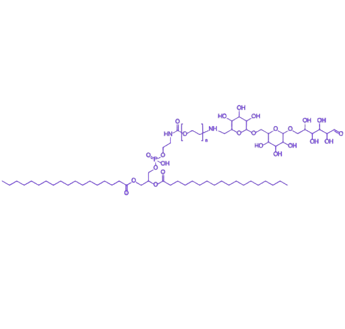 DSPE-PEG-Dextran(二硬脂酰基磷脂酰乙醇胺-聚乙二醇-葡聚糖)是一种新型多功能生物材料,通过特定的化学偶联技术将磷脂、聚乙二醇与葡聚糖三大功能模块整合为一体。该产品在生物医药领域展现出优异的生物相容性与结构可调控性,为药物递送系统及生物成像研究提供了理想的载体选择。 该产品的分子结构以二硬脂酰基磷脂酰乙醇胺(DSPE)为疏水端,可通过自组装形成稳定的脂质双分子层结构;中间段的聚乙二醇(PEG)链段赋予材料良好的亲水性与空间位阻效应,有效减少非特异性蛋白吸附;末端的葡聚糖(Dextran)组分则提供了丰富的羟基活性位点,可用于靶向配体修饰或生物分子偶联。其理化性质表现为良好的水分散性和胶体稳定性,在生理条件下可形成粒径均一的纳米载体系统。该材料兼具脂质体的生物膜亲和性、PEG的长循环特性及葡聚糖的生物功能性,在抗肿瘤药物靶向递送、基因治疗载体构建及生物标志物检测等领域具有重要的应用价值,尤其适用于需要提高药物递送效率和降低毒副作用的研究场景。