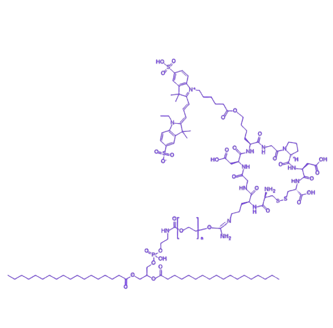 该衍生物通过整合靶向识别、长循环、荧光示踪等核心功能,可广泛应用于构建集诊断与治疗于一体的纳米递送系统,实现药物的精准递送、疗效提升及可视化监测,为肿瘤靶向治疗、分子成像研究及生物医学转化提供有力工具。