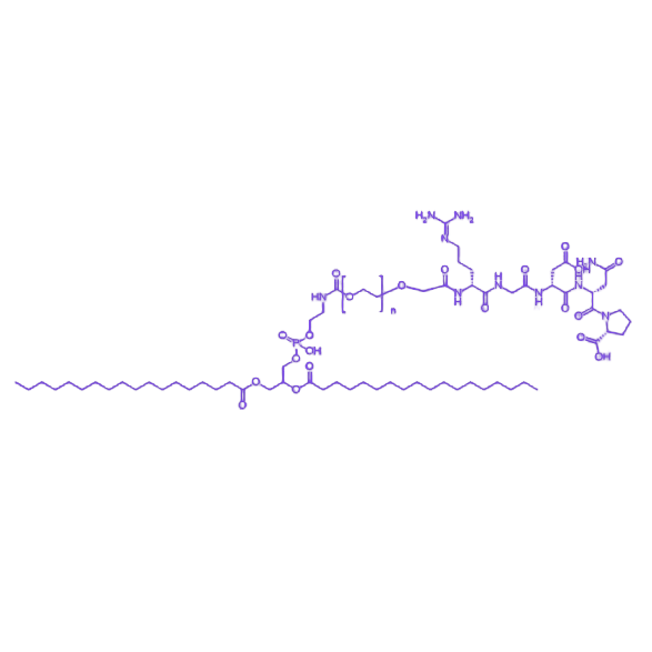 DSPE-PEG-GRGDNP 是一种功能强大、应用广泛的生物材料,其通过 DSPE 形成稳定载体框架、PEG 调控理化性质与体内循环特性、GRGDNP 实现靶向识别与细胞摄取增强,在靶向治疗与疾病诊断领域具有显著应用价值。
