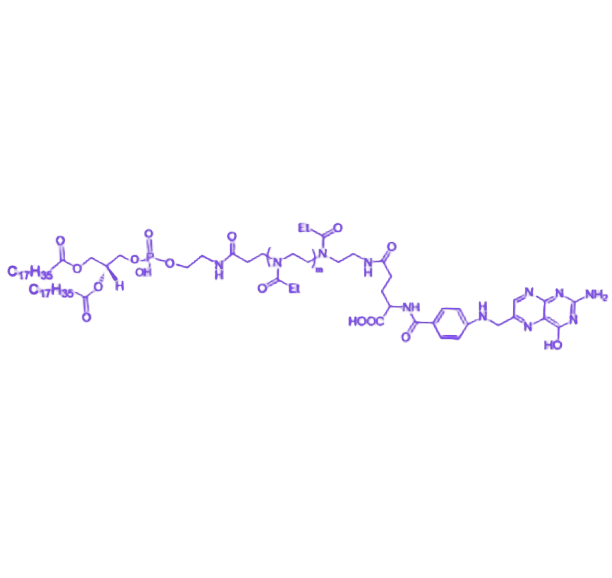 1,2-二硬脂酰-sn-甘油-3-磷酸乙醇胺-聚(2-乙基-2-噁唑啉)-叶酸(DSPE-PEOz-FA)是一种由脂质骨架、亲水性聚合物链及靶向配体构成的新型功能性脂质材料,其整合了结构稳定性、长循环特性与靶向识别能力,在药物递送系统领域具有重要应用潜力。