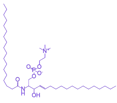 鞘磷脂是一类不含甘油的重要生物脂质分子,由鞘氨醇、脂肪酸、磷酸及胆碱或乙醇胺组成,具有典型的两亲性结构,广泛存在于动植物细胞膜中,尤其在哺乳动物细胞质膜和髓鞘中含量丰富,对维持细胞膜结构完整性、参与细胞信号传导及细胞间通讯具有关键作用。 其分子结构特征表现为:脂肪酸通过酰胺键与鞘氨醇的氨基相连形成鞘氨醇脂肪酸酰胺,极性头部则由磷脂酰胆碱或磷脂酰乙醇胺构成,这种结构赋予鞘磷脂同时具备亲水性头部和疏水性尾部的两亲性特性。 在生物学功能方面,鞘磷脂首要作用是参与构建脂质双层结构,有效分隔细胞内外环境,从而维持细胞膜的结构完整性和稳定性。此外,它还深度参与细胞信号传导过程,可通过激活或抑制细胞内特定信号通路分子,精准调控细胞的功能与行为,同时能够作为细胞间信号分子,积极参与细胞间的相互作用与通讯。