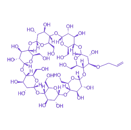 烯丙基的引入为分子带来了可反应官能团,使其在保留原有包合性能的基础上,能够通过烯丙基参与聚合反应、交联反应及与含特定官能团化合物的修饰反应。这种结构与性能的双重优势,使其在医药载体、材料科学、分析检测等多个领域具有潜在应用价值,可通过化学修饰进一步拓展功能多样性。