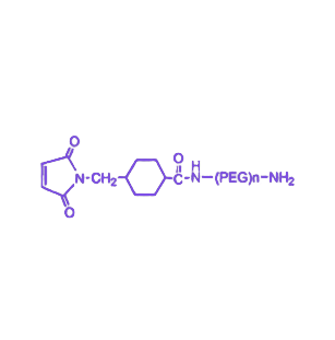 该交联剂分子一端为 马来酰亚胺基团(Mal),可在 pH 6.5-7.5 的温和条件下与生物分子中的巯基(-SH)发生特异性反应,形成稳定的硫醚键;另一端为 氨基(-NH2),能在适宜条件下与含羧基、醛基等基团的分子进行偶联,从而实现不同功能分子间的准确连接。其含有的 PEG4 短链(4 个乙二醇单元)具有双重关键作用:一是在保障分子一定水溶性的同时,有效避免长链 PEG 可能导致的空间位阻过大问题,特别适用于小型生物分子或空间结构紧凑的分子修饰;二是凭借良好的生物相容性,降低修饰后分子的免疫原性,满足生物医学应用对安全性的严格要求。相较于长链 PEG 交联剂,本品更适合对分子尺寸敏感、需准确控制修饰位点间距的应用场景,且分子结构中的环己烷桥增强了马来酰亚胺基团的稳定性,延长了试剂的有效使用期限。