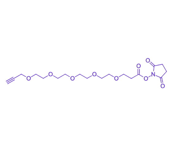 Alkyne-PEG4-NHS(炔基-PEG4-NHS酯)是一种两端含不同活性基团的异功能化聚乙二醇衍生物,一端为反应活泼的NHS酯(N-Hydroxysuccinimide ester),另一端为末端炔基(–C≡CH),具有约4个乙二醇重复单元(PEG4),在生物共轭化学及材料修饰领域作为关键连接工具广泛应用。