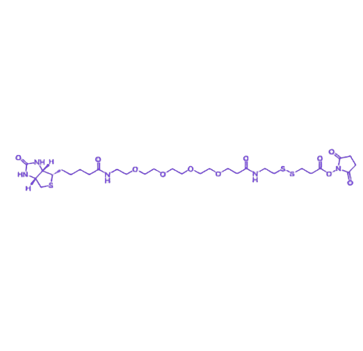 该试剂核心特性在于二硫键的可控可逆性,在TCEP、DTT等温和还原剂作用下,二硫键可特异性断裂,实现生物素化标记分子片段的选择性移除,为动态生物过程研究提供可逆操作基础。相较于不含PEG结构的同类试剂,其PEG4修饰显著优化水溶性、反应可及性及空间位阻效应,特别适用于高分子量蛋白、空间限制性位点、生物材料界面及纳米体系的标记需求。