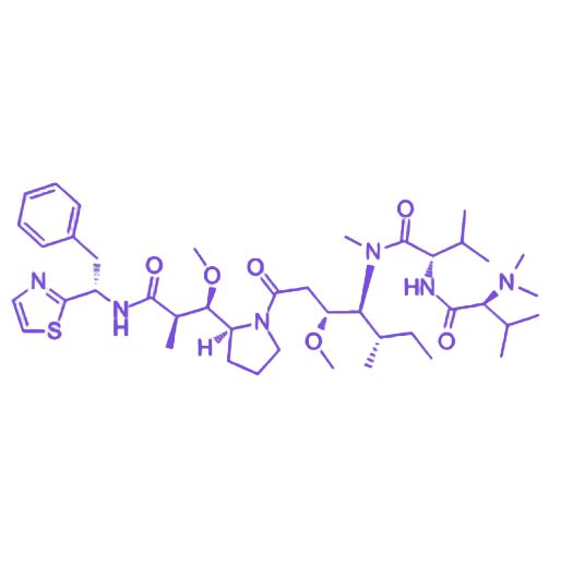 多拉他汀10(Dolastatin 10,简称Dol-10)是1980年代从海洋软体动物Dolabella auricularia中分离的线性五肽天然产物,作为高效微管抑制剂,通过与微管蛋白结合阻止其聚合,破坏有丝分裂纺锤体形成,导致细胞周期停滞于G2/M期,展现出极强的细胞毒性。 该化合物由多个非天然氨基酸构成,形成高度刚性的线性肽骨架,这些非天然结构单元共同赋予其显著的生物活性和较强的代谢稳定性。在抗体偶联药物(ADC)研发领域,Dol-10的结构经修饰衍生出Auristatin类分子,其中MMAE(Monomethyl Auristatin E)和MMAF(Monomethyl Auristatin F)保留了核心微管抑制活性,同时通过结构优化改善了药代动力学特性、体内稳定性及可偶联性,已成为FDA批准ADC药物(如Adcetris®)的关键有效载荷成分。