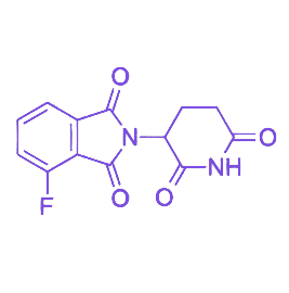 4-Fluoro-thalidomide(CAS号:835616-60-9)是沙利度胺的氟化衍生物,通过在其核心2,6-二氧代哌啶-3-基异吲哚二酮骨架引入氟原子实现结构修饰,分子式C₁₃H₉FN₂O₄,分子量276.22。该修饰策略显著增强了化合物的代谢稳定性与靶标亲和力,使其成为Cereblon(CRBN)蛋白的高效招募配体,广泛应用于PROTAC(蛋白降解靶向嵌合体) 技术领域。 作为PROTAC构建的关键组件,4-Fluoro-thalidomide通过连接子与靶蛋白配体偶联,可形成特异性蛋白降解剂。典型应用包括与IRAK4蛋白配体连接,构建PROTAC IRAK4降解物-1(HY-129966),进而实现IRAK4蛋白的泛素化降解。此外,该化合物亦可用作E3泛素连接酶配体,为CRBN介导的蛋白降解机制研究提供重要工具。 产品为白色至类白色结晶性粉末,纯度≥95%,常温下可溶解于DMSO、DMF、DCM及水等溶剂体系。为确保稳定性,储存需满足避光、-20°C条件,运输过程中应维持环境温度或采用超低温冰袋冷链运输。