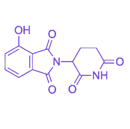4-Hydroxy-thalidomide(CAS号:5054-59-1)作为沙利度胺的羟基化代谢产物,其分子式为C₁₃H₁₀N₂O₅,分子量274.23。该化合物保留了沙利度胺核心的CRBN结合骨架(邻苯二甲酰亚胺-哌啶酮结构),并在邻苯二甲酰亚胺环的4位引入羟基取代基,此结构修饰通过羟基的极性与氢键供体特性,对分子的理化性质及生物活性产生调控作用。 研究证实,4-羟基沙利度胺仍可与E3泛素连接酶CRBN结合,但其结合亲和力可能因羟基的空间位阻或氢键作用而与沙利度胺存在差异。作为沙利度胺在肝脏中经细胞色素P450酶系(如CYP3A4)催化的潜在代谢产物,该化合物常用于沙利度胺的药代动力学与代谢机制研究,高纯度产品能确保实验结果的准确性,适用于细胞实验、动物模型等研究场景。储存时需避光保存于-20℃或冷藏条件下,以防止降解。